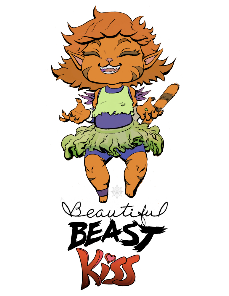 Beautiful Beast Kiss Victory pose. This was fun to make; used watercolor and digital painting blend for the final image.